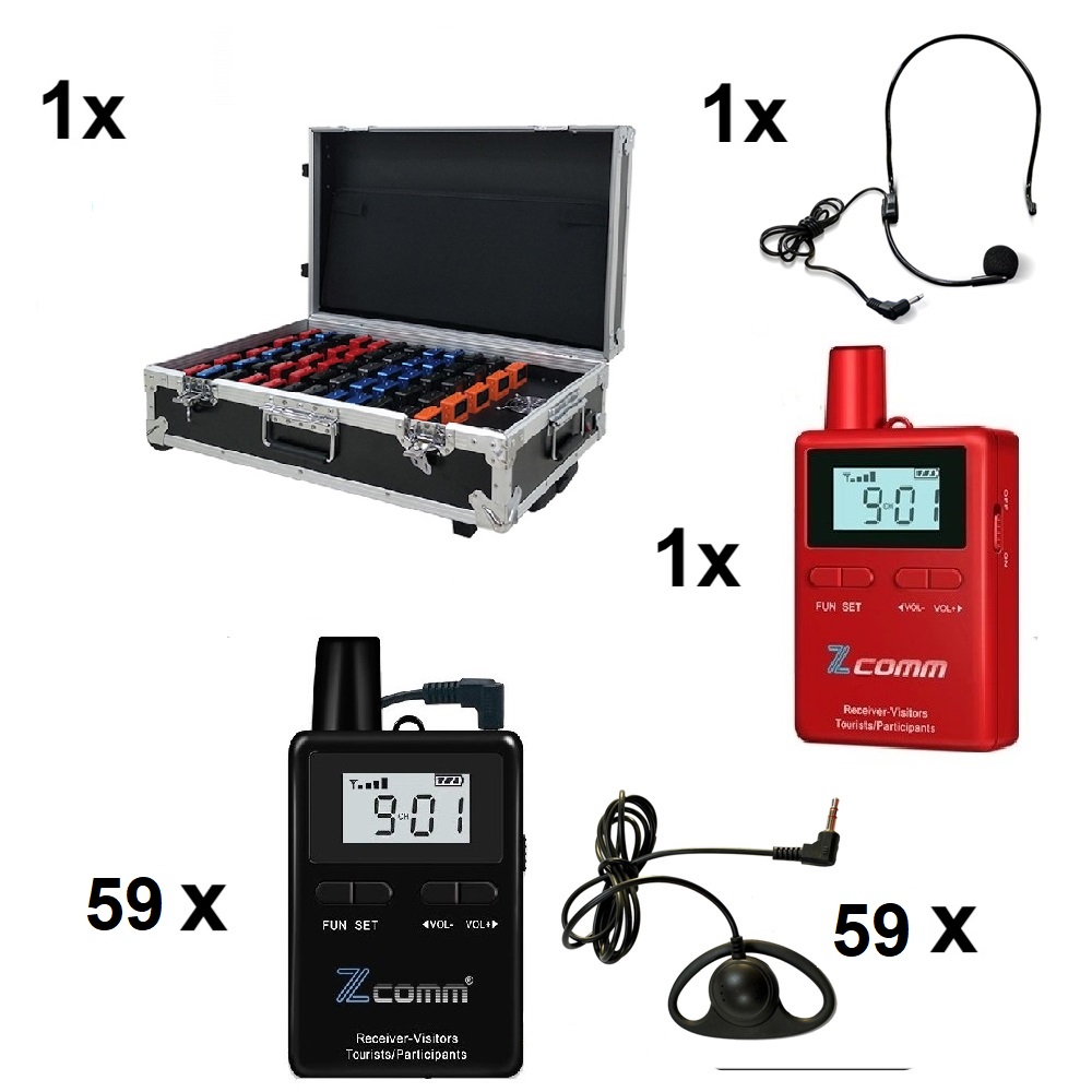 Ο παρουσιαστής μιλάει στο μικρόφωνο του ειδικά σχεδιασμένου ψηφιακού πομπού ZC-400 και οι ακροατές χρησιμοποιούν τους ελαφρούς δέκτες ZC-300 με ακουστικά, για να ακούνε καθαρά την ομιλία του ξεναγού.
